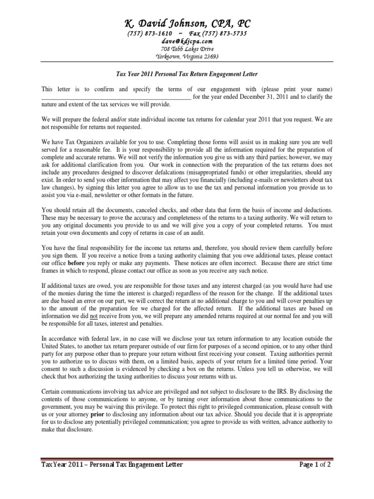 Cpa Tax Cpa Tax Return Engagement Letter