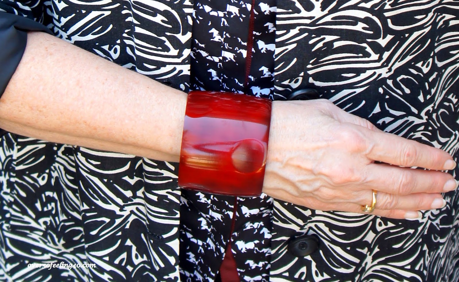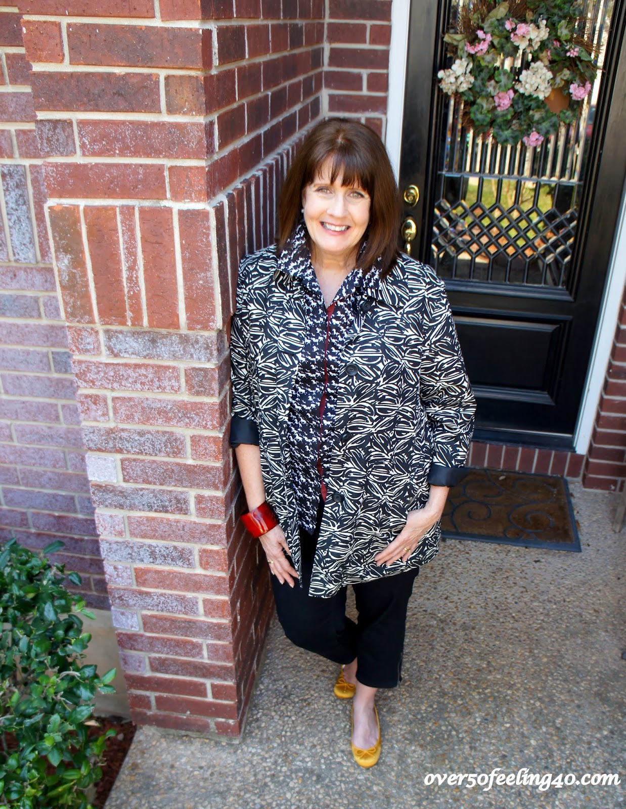 picture, I have put under the Chico’s jacket a fun black and white blouse